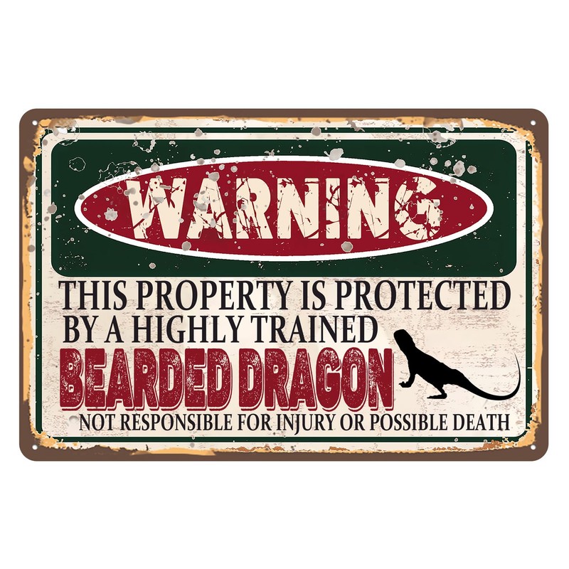 RCXsigns Vintage Bearded Dragon Metal Sign, Warning this property is protected bY a highly trained Bearded Dragon Sign Funny Tin Signs 12x8 Inch