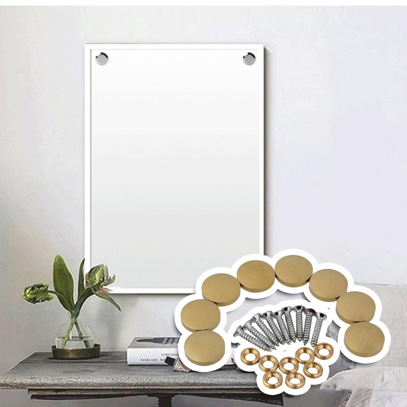 Note: The color of the item may vary slightly due to photography and your own computer. Feature: Made of brass It can fix and decorate mirrors commendably, create more elegant look. Used widely in mirrors, tea tables, wardrobes or other glass furnitures. Specification: Material: brass Color: Golden(Washers&Caps) + Silver(Screws) Cap Size: 20 x 5mm/0.79 x 0.20 inch(Dia x H) Washer/Ring Size: 9.5 x 4.8mm/0.37 x 0.19 inch (OD x ID) Screw Height: 20mm/0.79 inch Weight: 49g Package Include: 8 x Decorative Caps 8 x Screws 8 x Washers