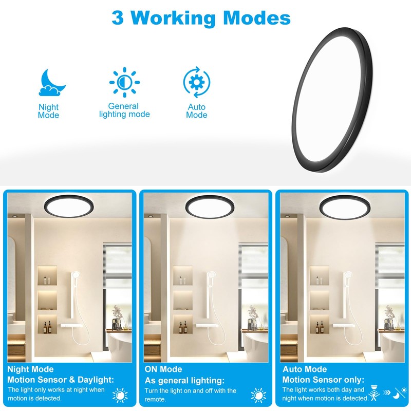 RDGOOD RDGOOD Sensor LED Ceiling Light Dimmable with Motion Sensor, 18W 1800LM Radar Sensor LED Ceiling Lamp, 3000K/4500K/6500K Dimmable Sensor Lamp for Bathroom, Garage, Basement, Hallway, Balcony, Hallway ?22x2.5CM