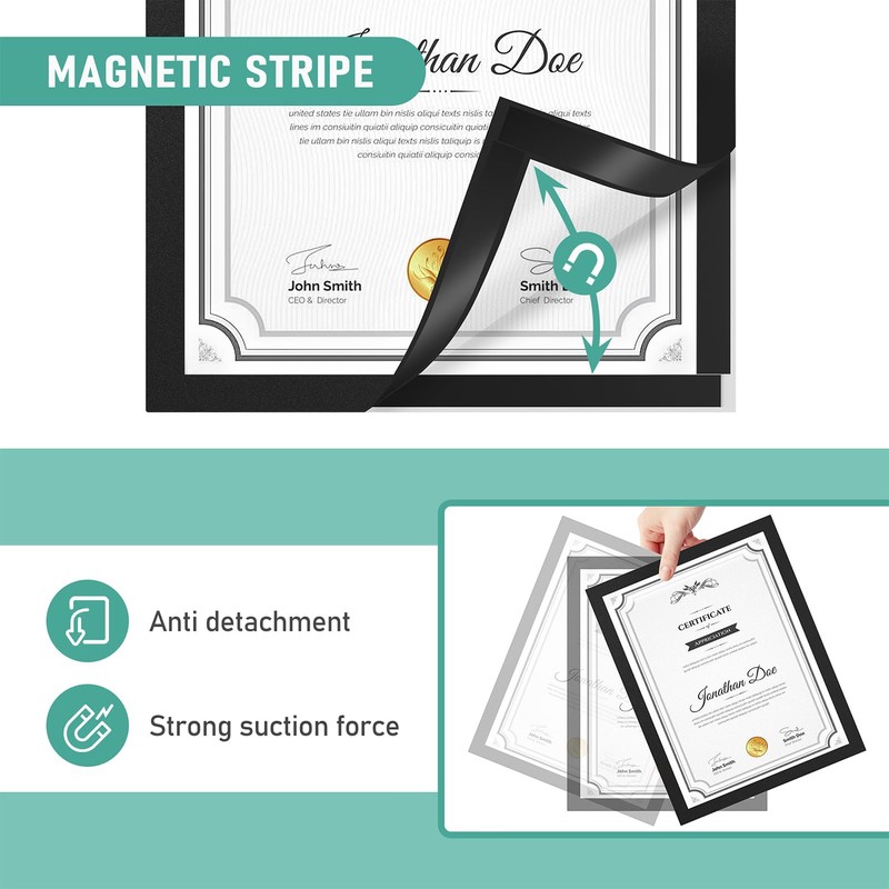 - 【Multi-functional Application】Magnetic frame can hold posters, signs, flyers, pictures, notices, documents, drawings, photos, certificates, papers, crafts and so on, suitable for various occasions.