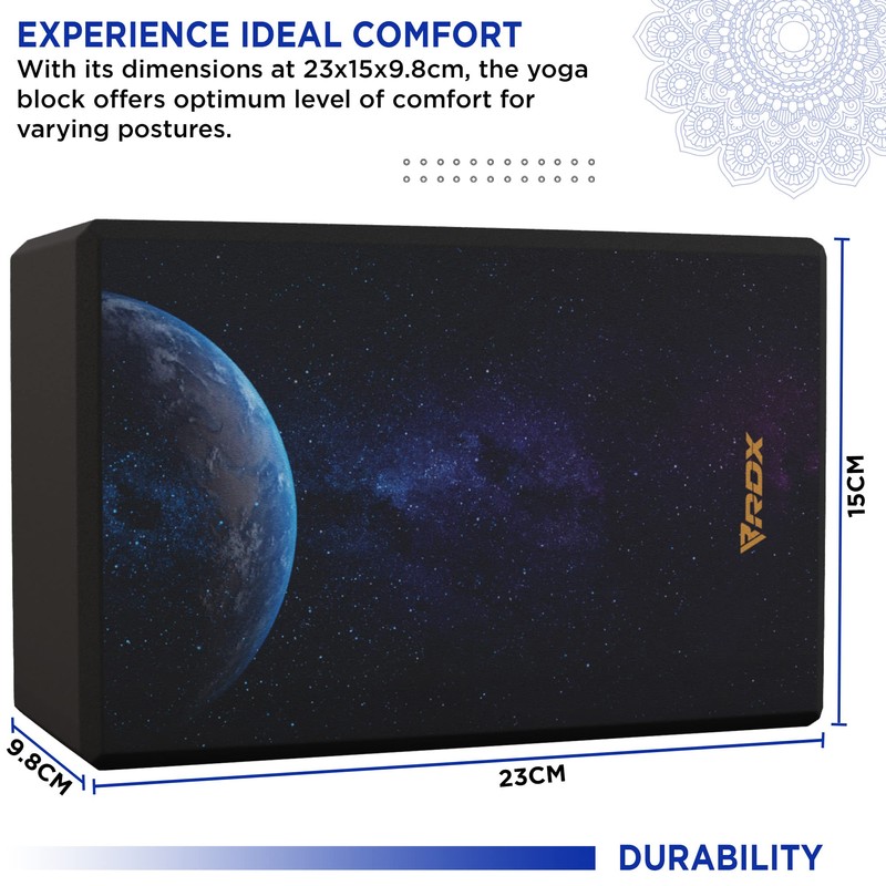 - BEVELED EDGES DESIGN Ideally sized (23x15x9.8cm) yoga block also serves as a balance cushion under head or torso to increase comfort in restorative poses. Great for intermediate or advanced yogis looking to try versatile and exciting yoga poses.