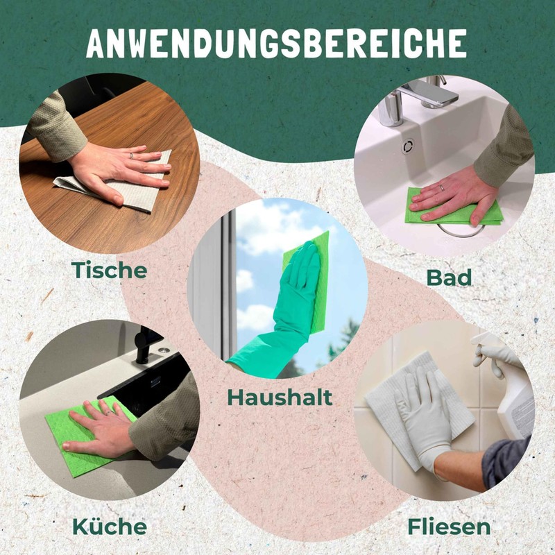 - Sustainable and plastic-free cleaning cloths - free from microplastic and disposable waste