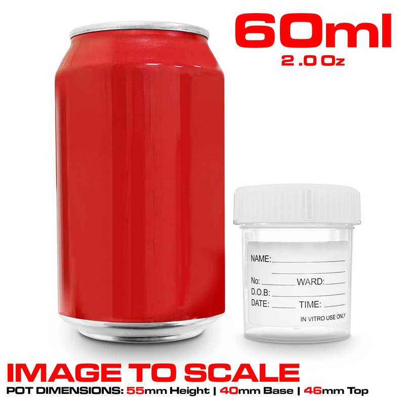 RE-GEN 60ml Specimen Container Purchase Quantity - (10 Containers) Size - 60ml Material - Clear plastic Clear labelled identification markers Quality fitted leak prove screw top lids