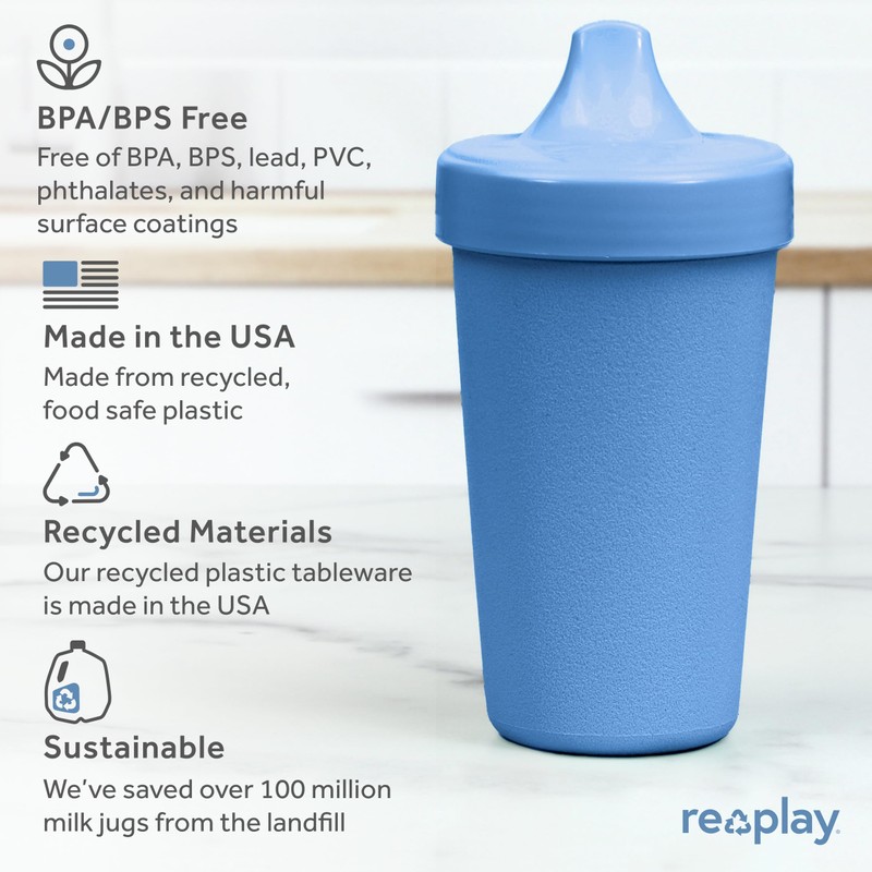 - Sustainable and Reliable: Re-Play's spill proof cups for toddlers are made in the USA from recycled milk jugs, making a positive contribution to a more sustainable environment