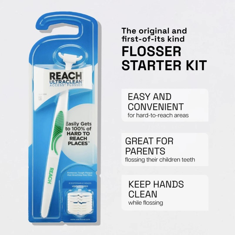 Here are the standout features of the REACH Ultraclean Access Flosser Starter Kit (Unflavored):