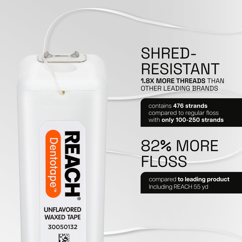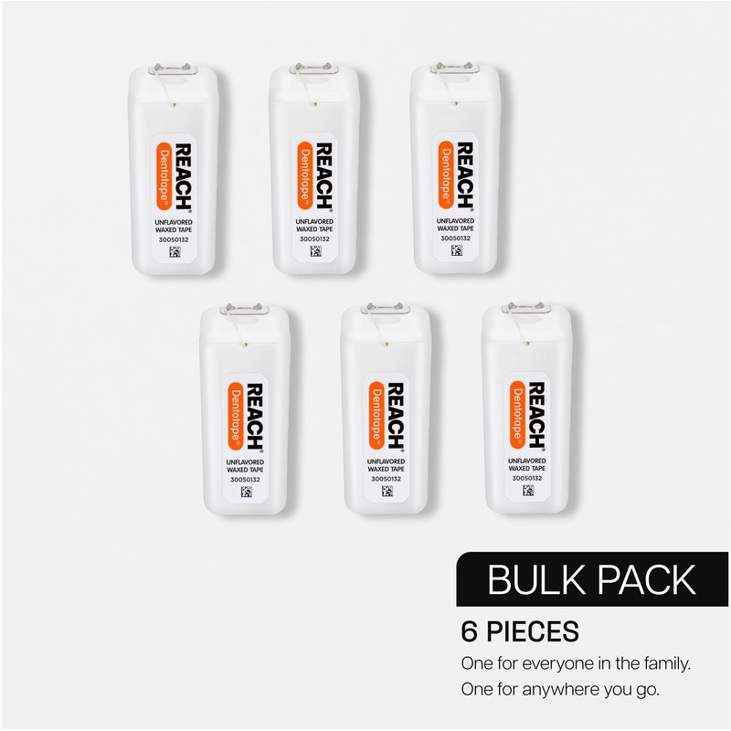 REACH Dentotape Waxed Dental Floss Tape, Unflavored, Extra Wide Floss, Shred & Frey Resistant, Plaque Remover for Teeth, Easy on Gums & Teeth, Oral Care, PFAS Free, for Adults & Kids, 6 Pack, 100 yd