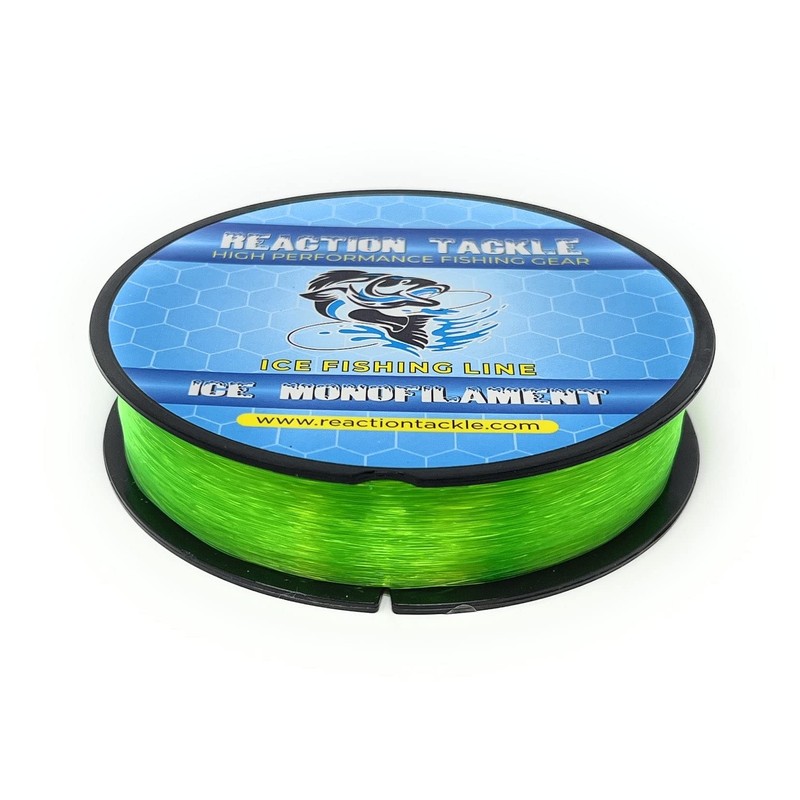 Reaction Tackle Ice Monofilament – Ice Fishing Mono Line, Tip-Up Line - Hi Vis Green - 4LB / 1000yds