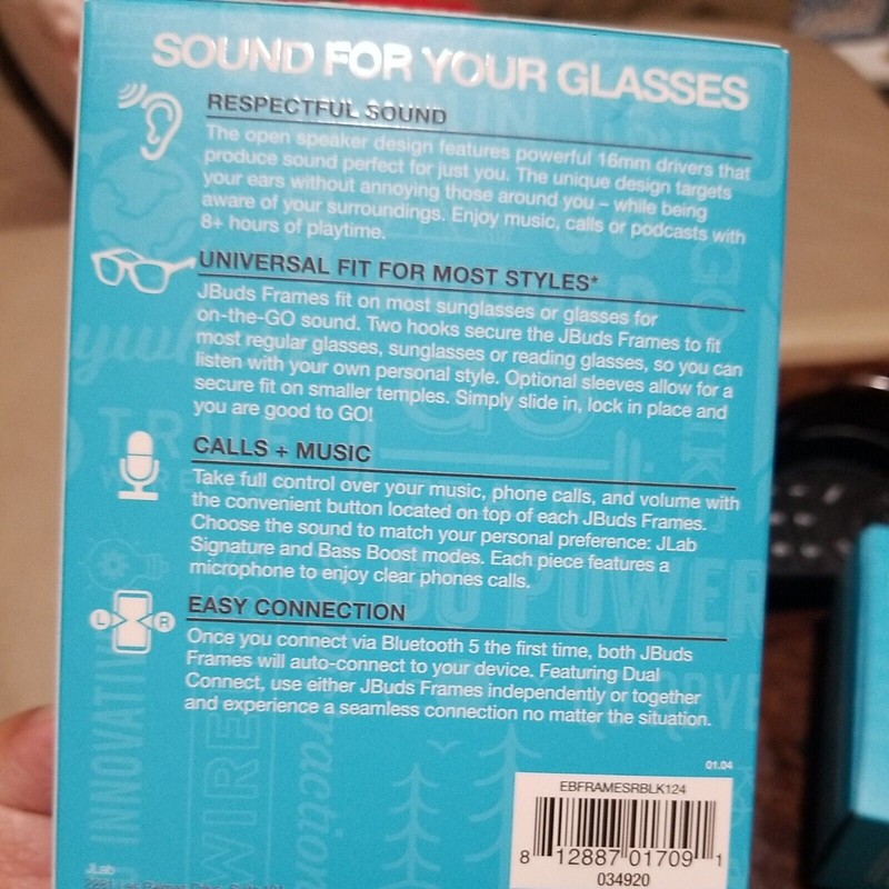 New sealed ! JLab JBuds Frames Wireless Bluetooth Audio For Glasses - Black.