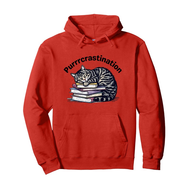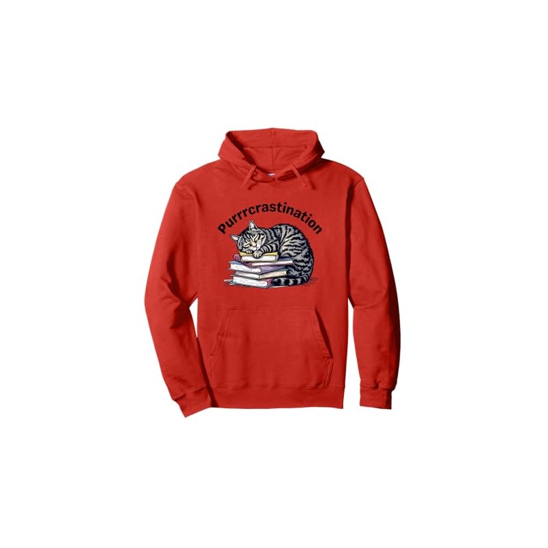 • This hilarious design features a sleepy tabby cat napping on a stack of books, perfect for bookworms who love procrastinating. Ideal for anyone whose to-do list includes reading, napping, and avoiding responsibilities!