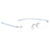 - Unisex design. Glasses that fit most face shapes. Since they do not have a frame on the front, these glasses are perfect for customers who want less visible glasses. Ultra-thin bridge and side frame in stainless steel silver with high-quality plastic brackets in light blue matt.