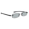 - Unisex design. Glasses that fit most face shapes. Since they do not have a frame on the front, these glasses are perfect for customers who want less visible glasses. Ultra-thin bridge and side frame in stainless steel silver with high quality black plastic temples.