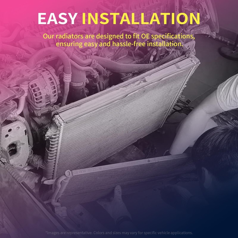 - PREMIUM INSTALLATION : The aluminum radiator core built with TIG-welded end PA66 GF30 inlet/outlet tanks, brass transmission oil cooler and treated coating is applied to ensure product longevity.