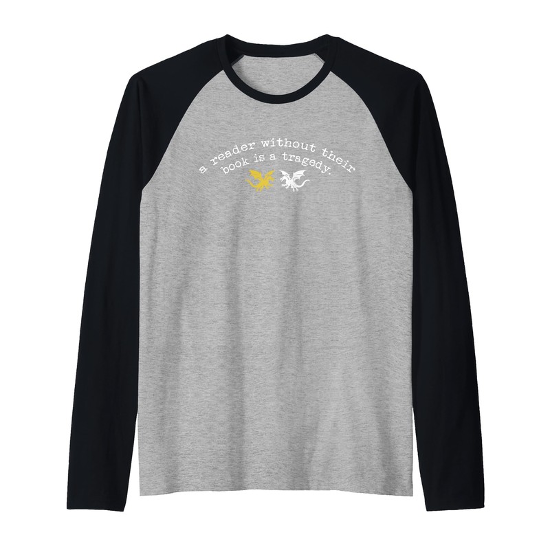 Reader Without a Book is Tragedy Funny Dragon Bookworm Gift Raglan Baseball Tee