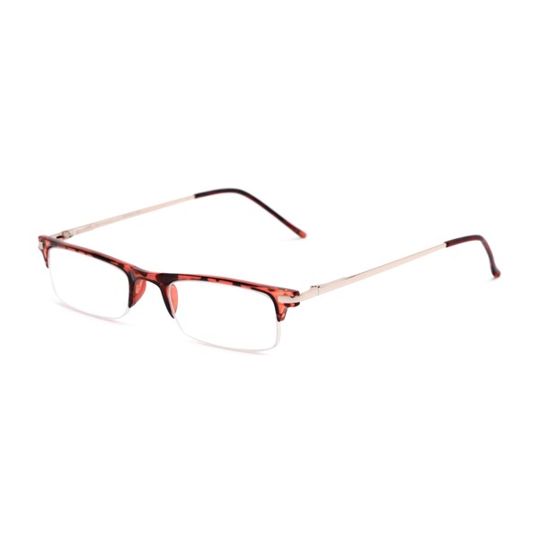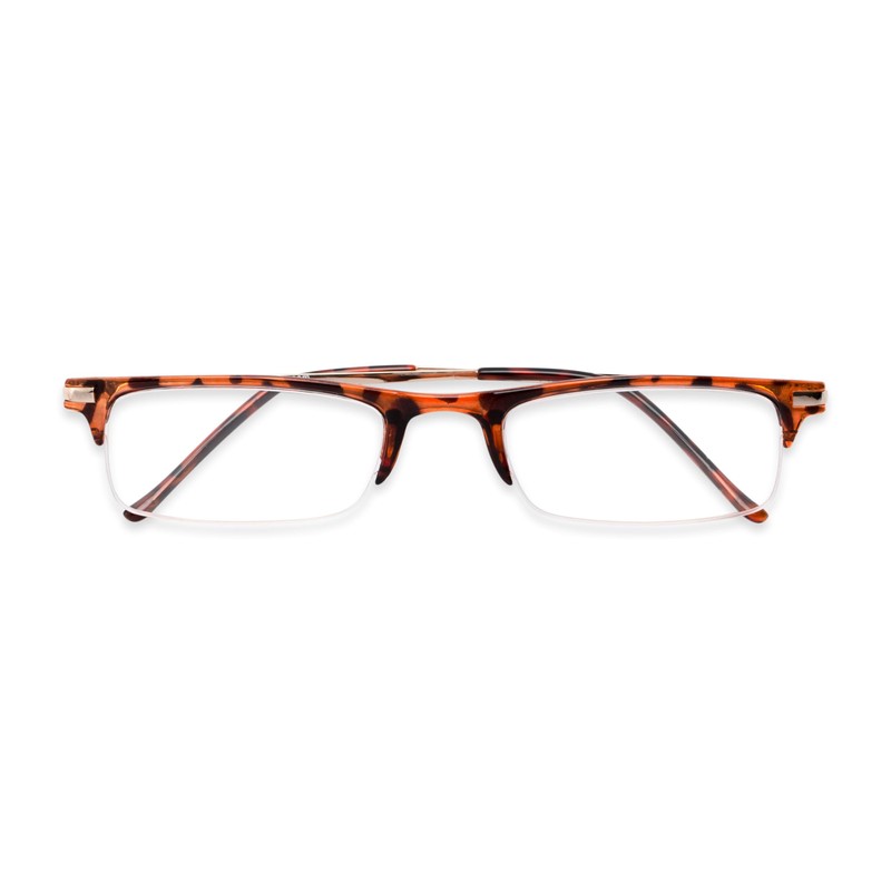 - THE BISHOP: These lightweight, thin reading glasses are available in classic brown or black - or trendy blue or red. Spring temples provide a comfortable fit, while the semi-rimless lenses allow you to peek over the top when not reading.