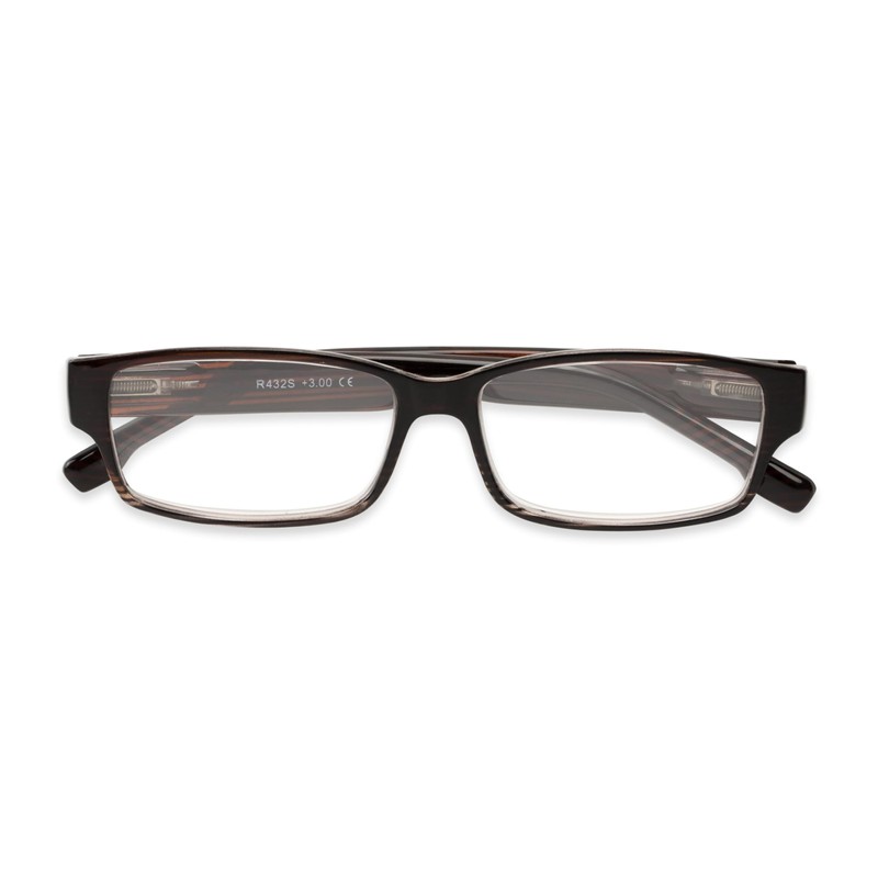 A striped print frame and spring hinge temples make The Magnus both clever and comfortable. The plastic frame comes in a flattering rectangular shape with fully magnified reading lenses.