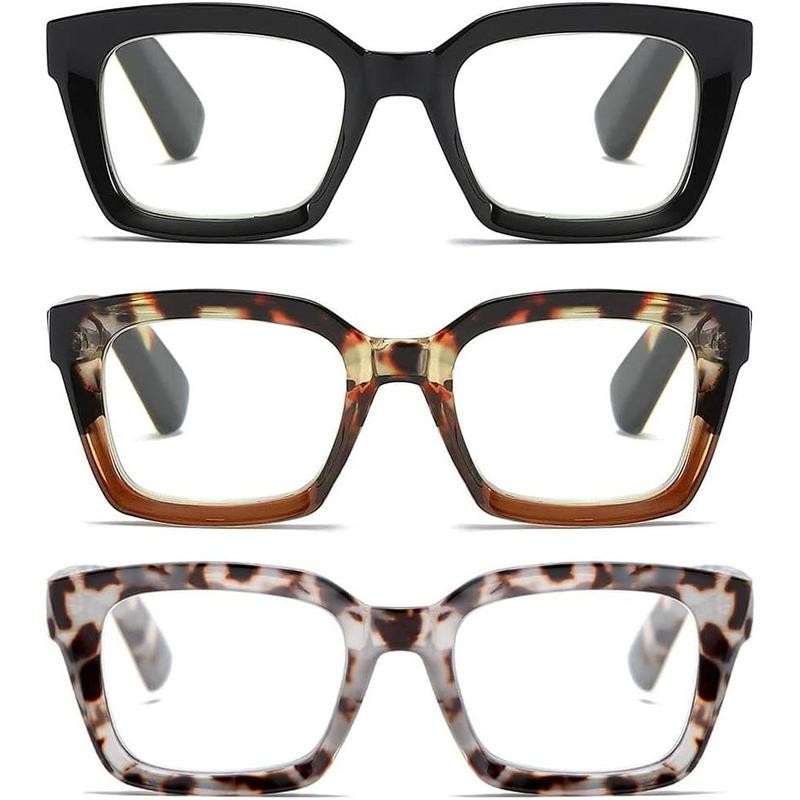 - About this item[Anti Blue Light Readers]Blue Light Blocking Glasses can effectively block harmful blue light coming from phones, computer monitors, gaming, and other devices.Reduce eyestrain, enjoy your digital timeand sleep better.[Exclusive Design]Lightweight texture vintage design frames make you more stylish.Unique and stylish designer reading glasses that will make your style shine.[Flexible Spring Hinge]Adjustable spring legs find the fastest and best fit for different face shapes without uncomfortable squeezing and pressure.[Oprah's Favorite Things]With so many people spending long hours on digital devices, glasses with clear vision are suitable for Computer, Reading, Gaming, TV, Phones.[Confidence Boost in Style]From board meetings to coffee dates, these chic frames add a touch of sophistication to any outfit-because clear vision should never compromise your style. Service:have any question,please contast us.We are your question at first time.