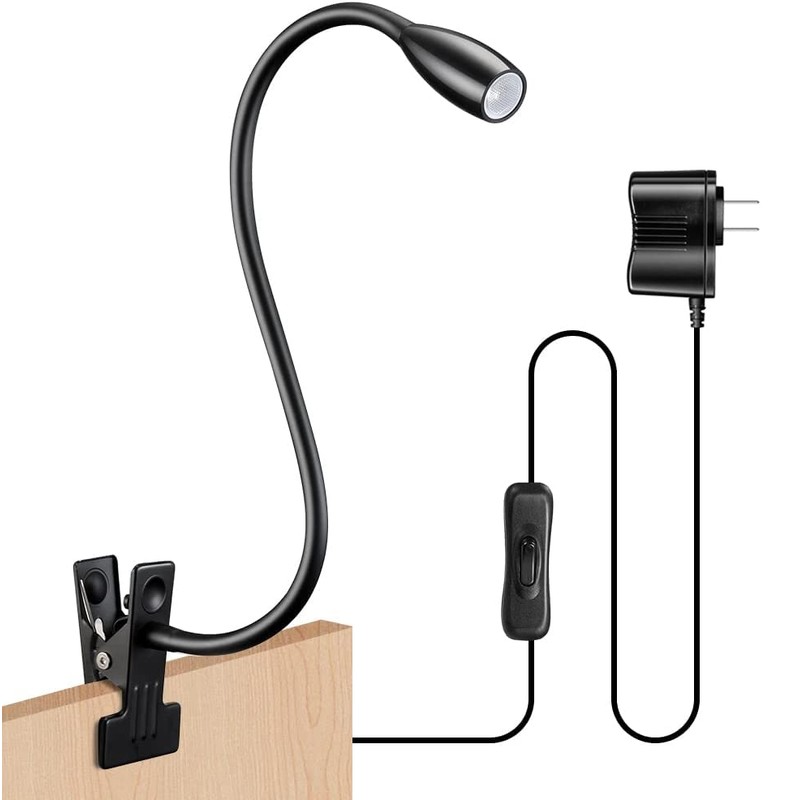Reading Light,Clip On Desk Lamp Led Gooseneck Lamp Night Lighting for Table and Bed Headboard,200lm/3000k/3w/110-240v Ac, Beam Angle:30 °,Gooseneck Length:38cm,Cable Length:220cm
