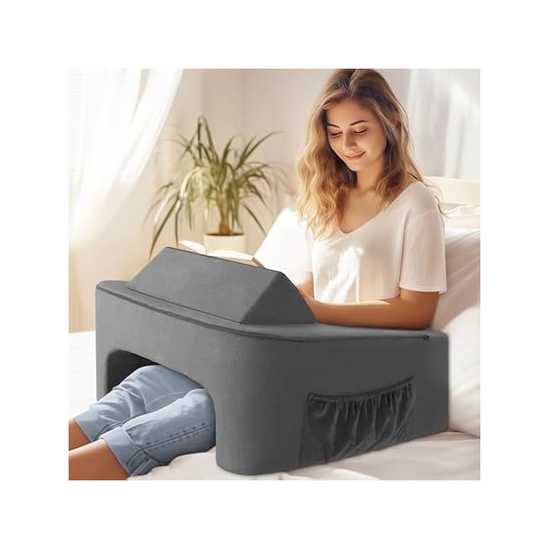 Reading Pillow for Sitting in Bed Adult Size, Back Pillow for Bed Sitting Up, Memory Foam Gaming Pillow, Lap Pillow with Triangular Pillow, Grey Bed Desk for Laptop and Writing/Gaming
