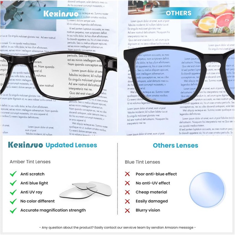 - QUALITY YOU CAN RELY ON. Readers are manufactured with high-impact lenses, strong neodymium magnets, and a durable silicone wrap-around rigid headband strap. Along with our unique 180 degree hinges that allow each lens to fold upward towards the frame or straight down around the neck. Kexinsuo glasses are built with the expectation that you'll be wearing them for years to come.