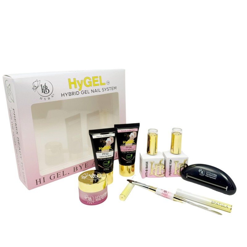 - HYBRID GEL - READY Kit #2 / HyGEL Collection is an electrifying array of fun colors designed to ignite creativity and glamour. Bursting with vibrant colors and dazzling glitters, this collection offers limitless possibilities for expressing your unique style and personality. This is the PERFECT Kit for Beginners and Professionals. This kit has all you need. HYGEL HYBRID GEL STARTER KIT. Perfect HyGEL Collection Includes: 2 x Hybrid Gel 30ml Tubes 1 x Hybrid Gel Dual Brush + Slice Tip 1 x Hybrid Mini Squeezer 1 x Glass Alcohol Solution Jar Vit-B Base Gel Bottle HyShine Top Gel Bottle