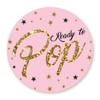 Ready to Pop Stickers | Faux Glitter | Ready To Pop Baby Shower Stickers for Popcorn | Ready to Pop Stickers for Boy and Girl (Pink, 1.67")