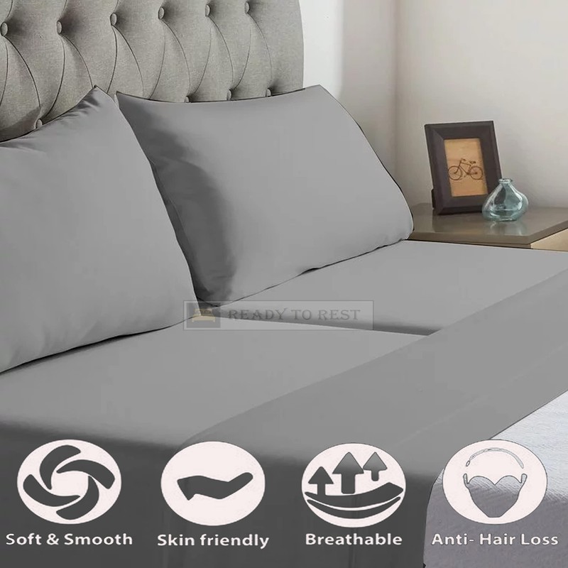 Ready To Rest Split King Sheet Set 5 Piece- 100% Egyptian Cotton- 400 TC- 16 Inch Deep Pocket- Dual Adjustable Split King Bed Sheets- Silver Grey Solid