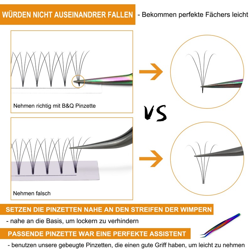 - Save your time: You no longer need handmade fans because we offer you pre-made eyelash fans that meet your 4D/6D/7D requirements. All you need to do is pick up the pre-made eyelash fans with tweezers and apply them to the customer’s eyelashes. This allows you to shorten your working time.