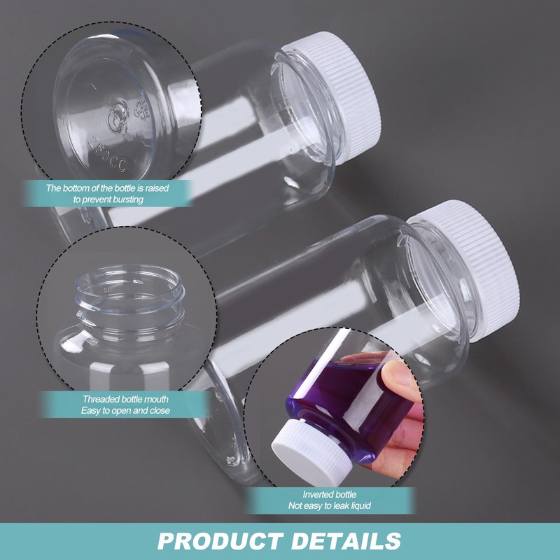 - ✅【Great Material】These juice bottles with lids 100ml are made of PET plastic material, thickened and durable, which can be used for a long time.