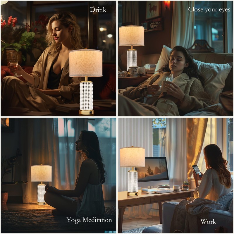 - [Touch Control Table Lamp]-You can adjust the lumiance of the table lamp sets as your favorite by tapping anywhere of the metal parts,base,stem,and the top finial.