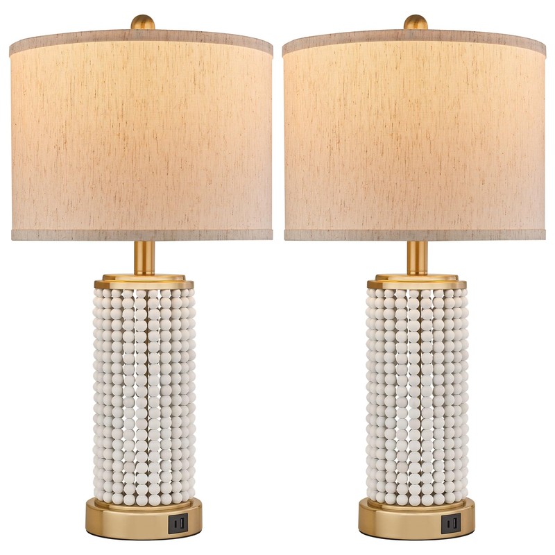 - [Traditional Classic Wood Beaded Table Lamp]-The bedside table lamp features classic wood bead elements combine with high quality metal materrial, gold frame base would be more luxurious and durable.