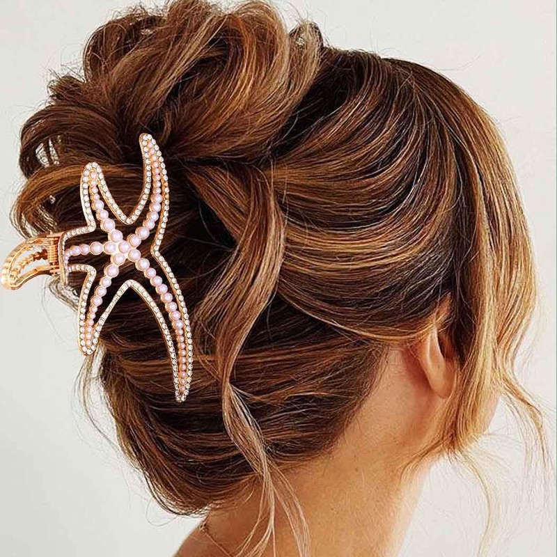 Reaky Starfish Hair Claw Clips Pearl Claw Clip 2 Pcs Gold Metal Hair Clips Rhinestone Hair Accessories for Women