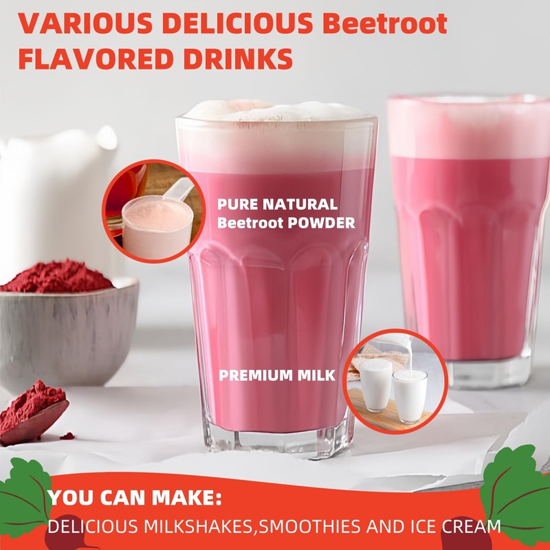 - To solve the problem of monotonous drinking water, beet root juice powder can be paired with water for drinking, or mixed with other flavored drinks for a unique and delicious taste