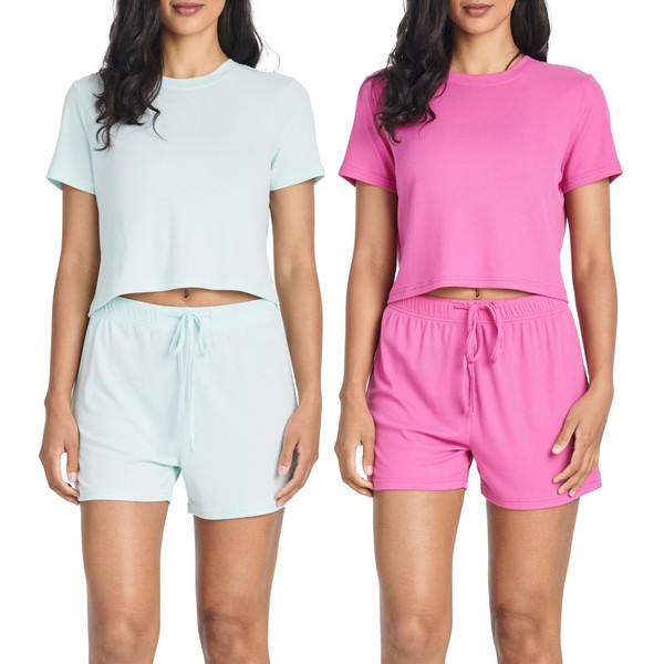 - Complete 2-Pack Lounge and Pajama Set: This set includes two matching 4-piece outfits featuring a crop top, t-shirt, shorts, and sweatsuit. Perfect for summer lounging, active days, or cozy pajama nights. Ideal for vacations, workouts, or simply relaxing at home.