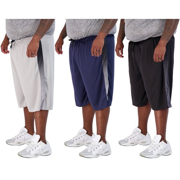 Real Essentials Men's Big & Tall 3-Pack Dry Fit & Mesh Active Athletic Perfomance Shorts (3X-5X), Mesh-set B, 4X