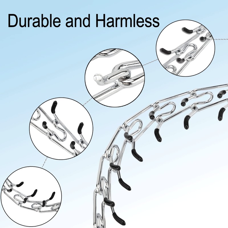 Made of high quality iron with chrome plating, this dog prong collar is durable and not easy to rust. The smooth round head design along with the comfortable rubber covers protect the dog's respiratory tract and sensitive parts of the neck from sharp pricks. And 2 strong D-rings allow for a tighter connection with the dog leash.