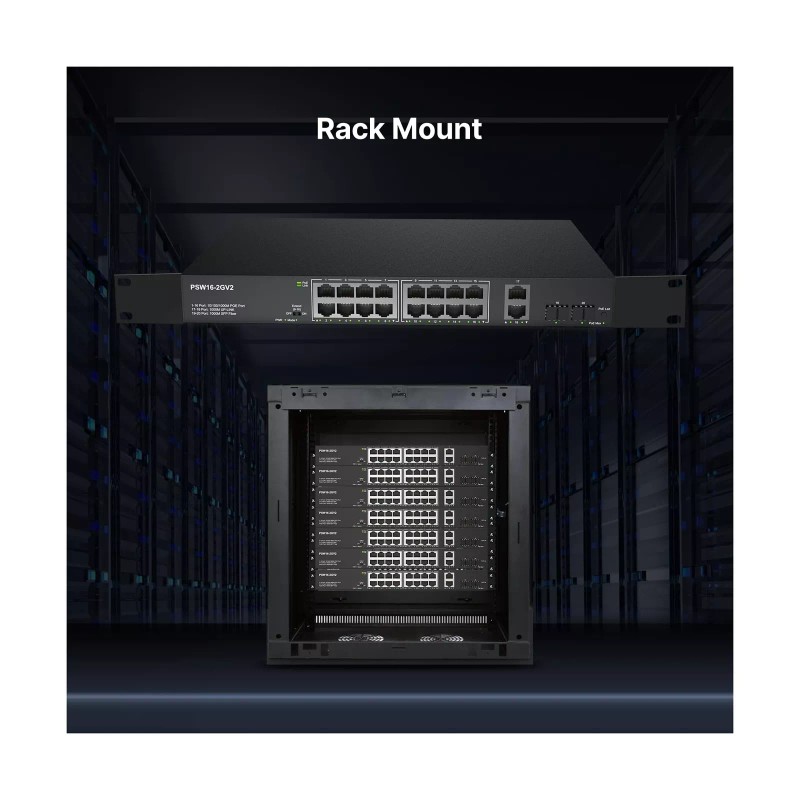 Real HD 16 Port Full Gigabit PoE Switch with 2 Gigabit Uplink SFP Ports, Unma...