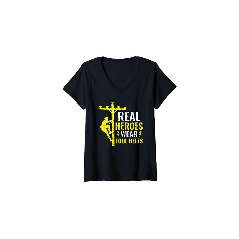 Real Heroes Wear Tool Belts - Lineman Electrician V-Neck T-Shirt