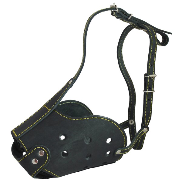- Well-fitting, comfortable muzzle is made of high quality genuine leather, trimmed and riveted for extra strength.