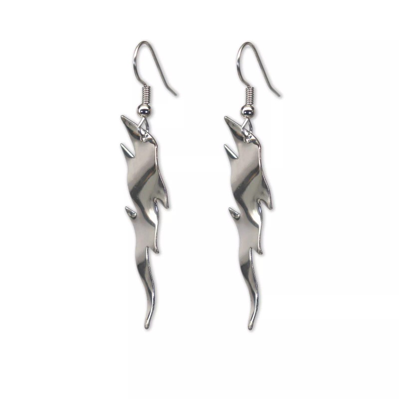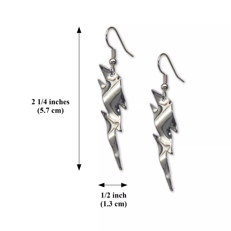 Real Metal Lightning Bolt Earrings Polished Silver Dangle #986