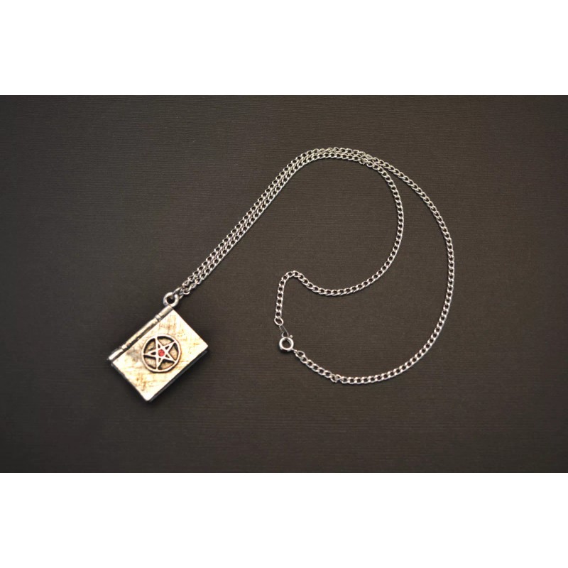 Real Metal Wizard Book of Magic with Pentacle and Red Crystal Pendant Necklace NK-400