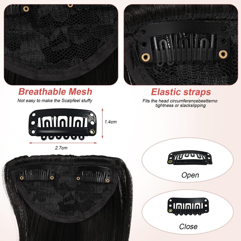 - Clip wear: 1 hair extension design clip for easy wearing, putting on and taking off. The clips are firm and do not hurt your original hair. They can be cut, dyed, curled or straightened as needed. The design of the fringe hair extension with two invisible clips makes it easy to put on and take off. The bangs hair clips are strong and high quality, they can stay in it for a long time without falling off. Its width and thickness fit the forehead of most men
