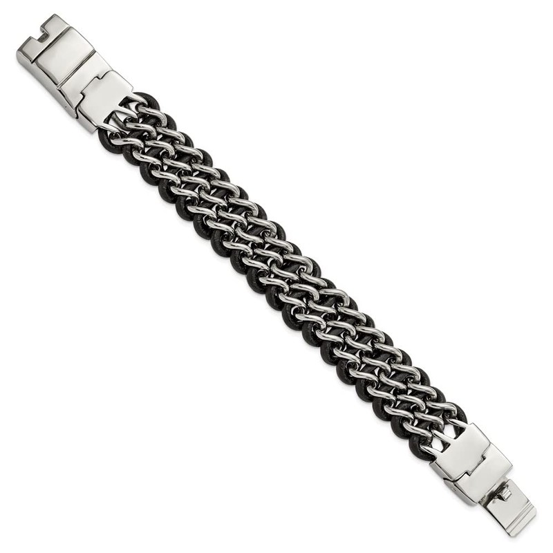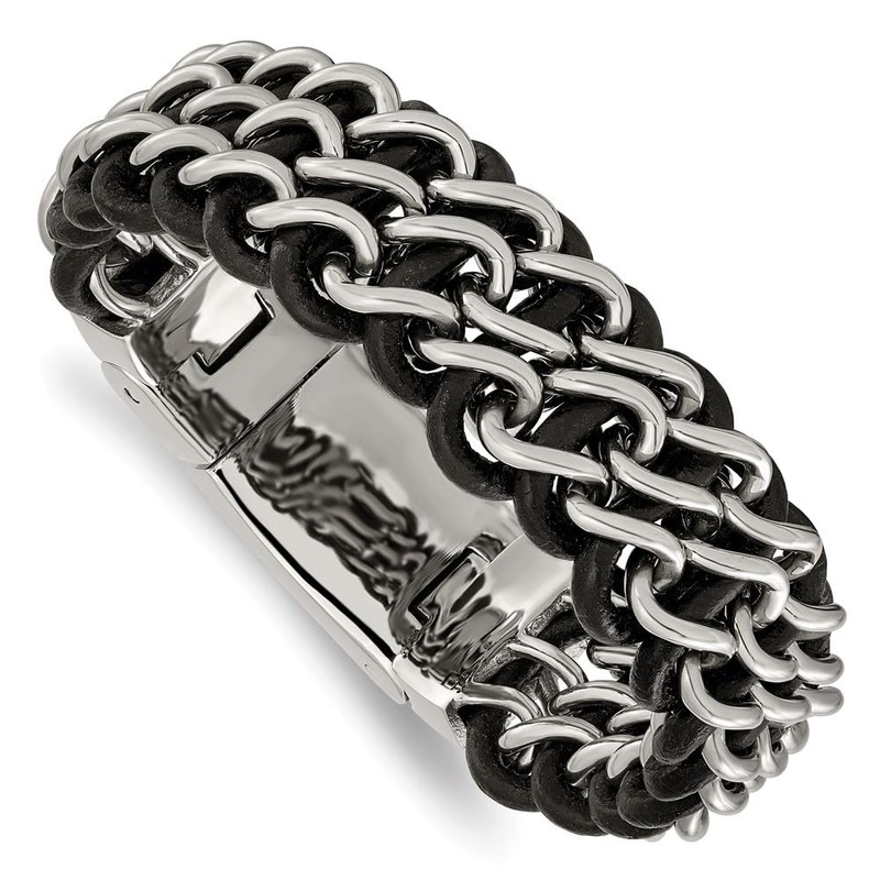 - Your satisfaction is our top priority at Sonia Jewels - Solid Stainless Steel Men's Black Leather Bracelet 8.75"