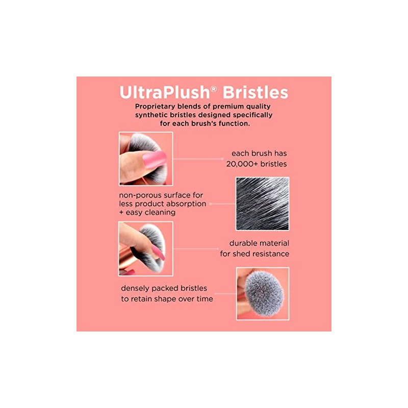 - Makeup brush designed with an aluminum ferrule & UltraPlush, custom-cut, synthetic bristles that don't shed- Also 100% Cruelty-Free and Vegan- Real Techniques products are never tested on animals