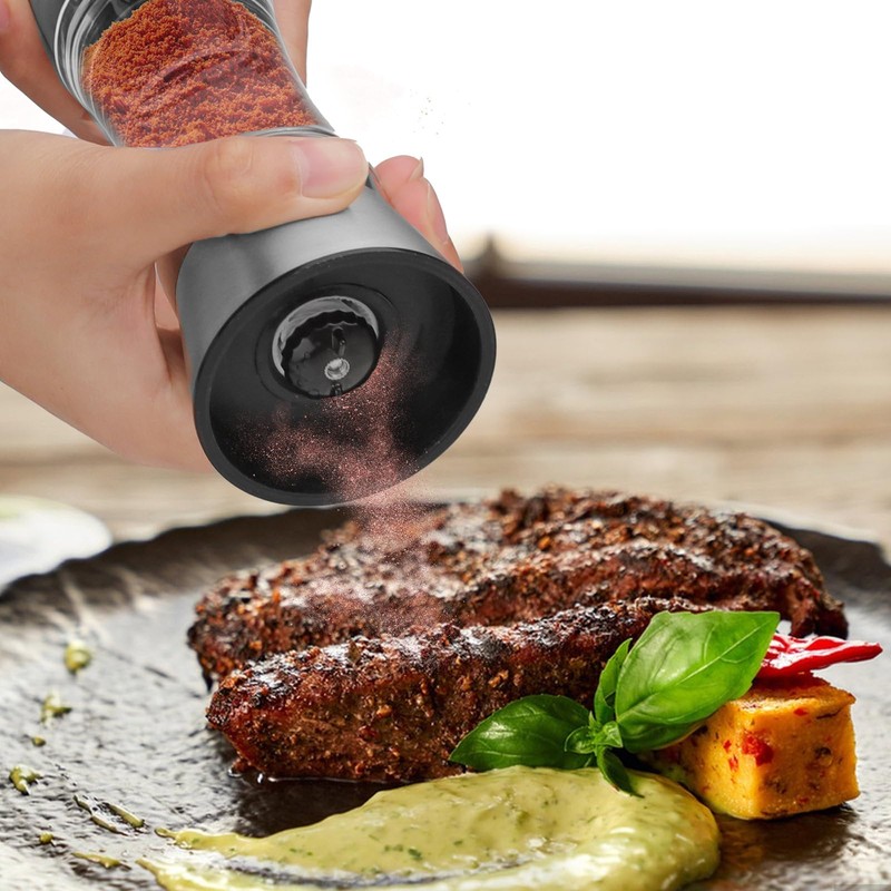 - 【Widely Applicable】 This salt grinder manual can grind black pepper, white pepper, sea salt, peppercorns, dried chili peppers, cumin, cloves, rice, mung beans and so on. Grinding larger size ingredients can be patted and then ground.