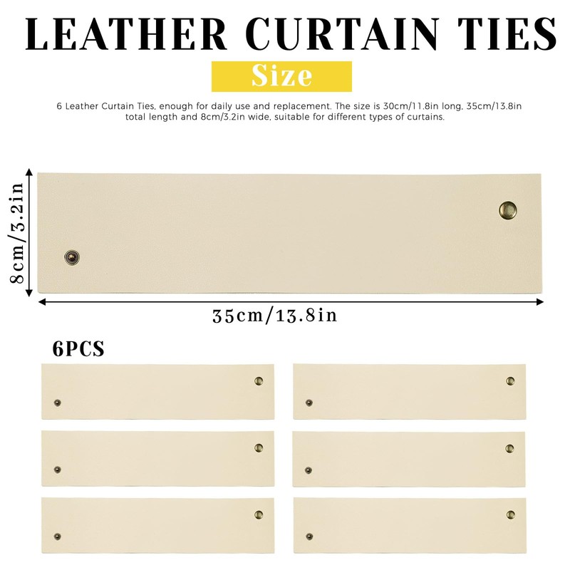 - 【Size】6 leather curtain ties, enough quantity for daily use and replacement. Length 30cm/11.8in, total length 35cm/13.8in, width 8cm/3.2in, suitable for different types of curtains.