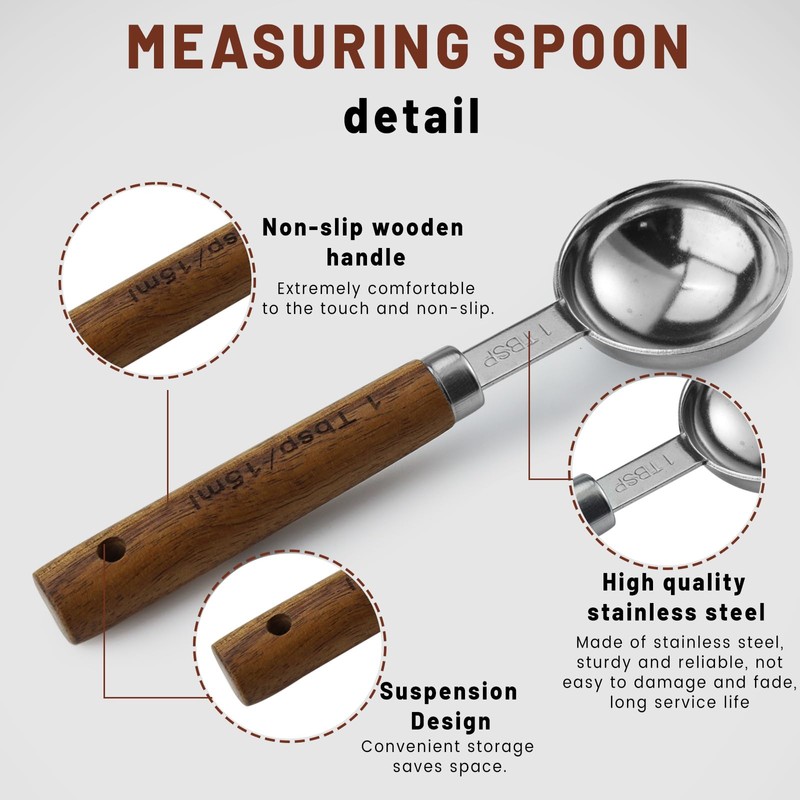 ◆ Material der Messlöffel: Edelstahl-Löffelkopf + Massivholzgriff.