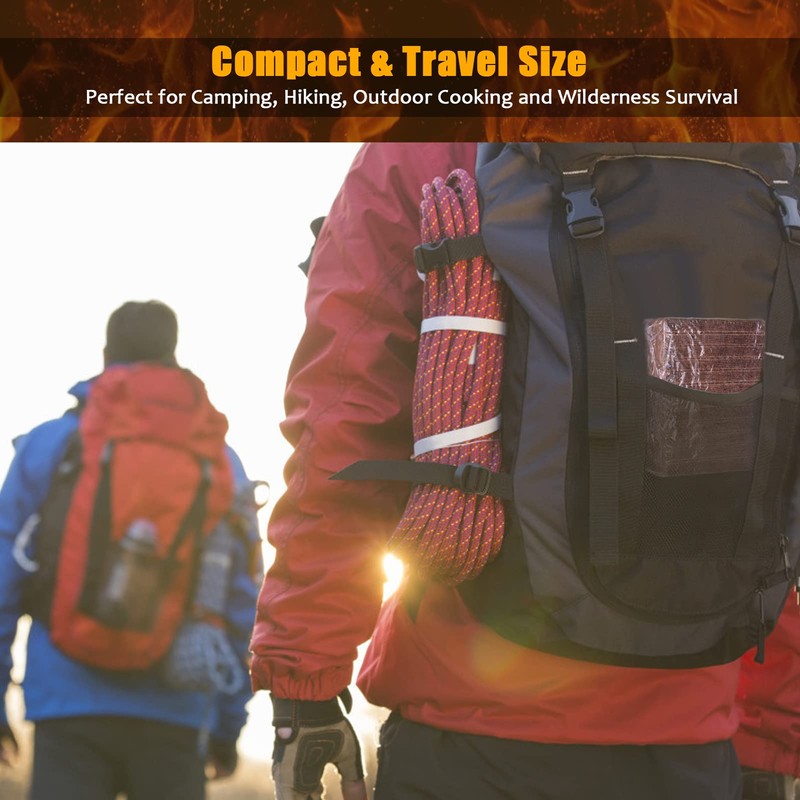 - DURABLE & LONG-LASTING FIRE STARTERS: A robust fire starter block burns up to 8-10 mintues, long enough to start a cozy fire on your fire pit, grill & fireplace. It's compact & lightweight to place into your backpack with the portable size of camp fire starters, to light a campfire for camping and hunting trips