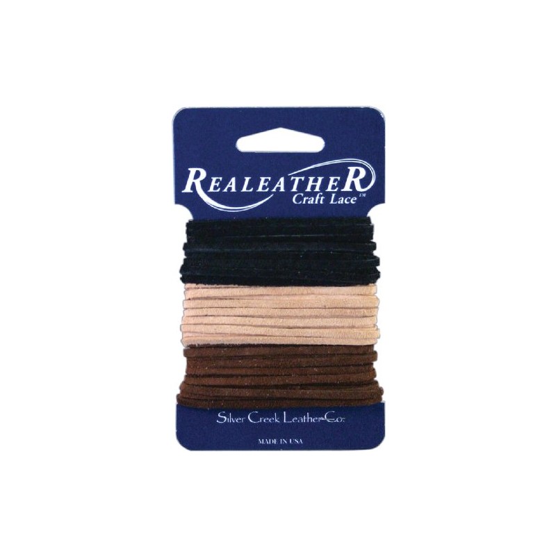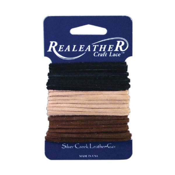 Realeather Crafts Sof-Suede Lace .094"X8yd Carded-Black, Cafe & Sand