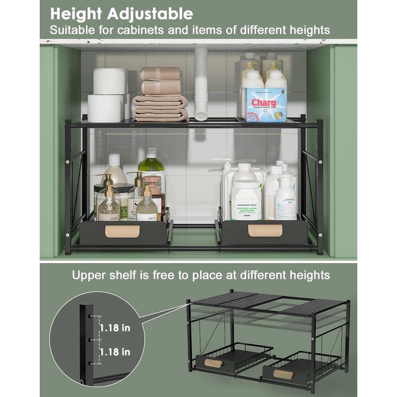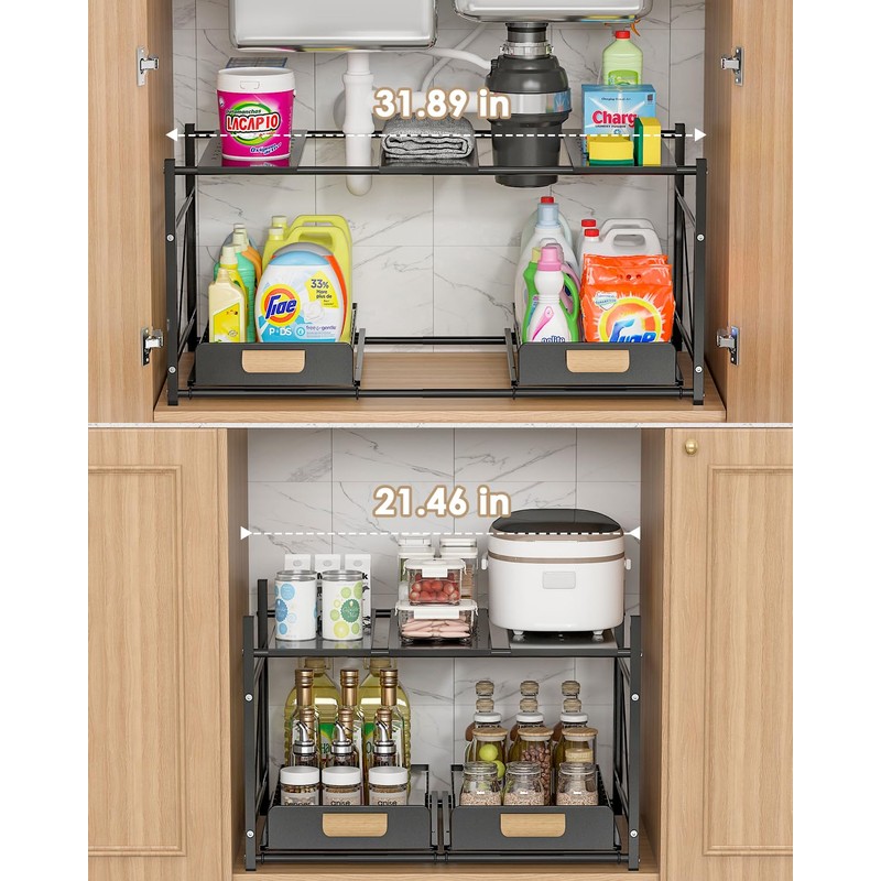 - Extendable Length: The length of the under sink organizers and storage can be easily adjusted from 21.46 inches to 31.89 inches with the extension rails.