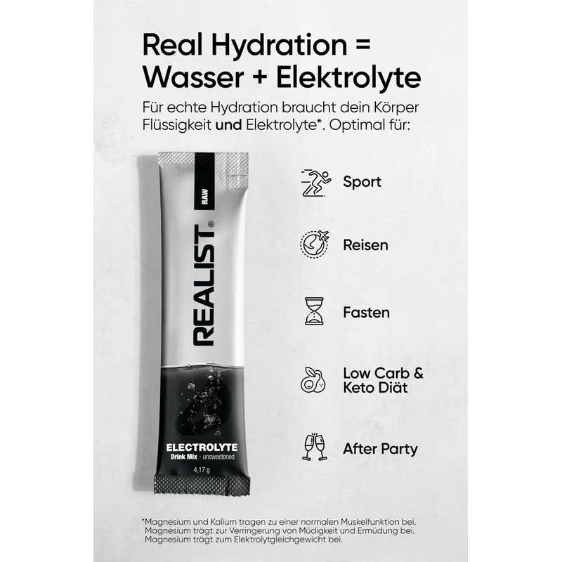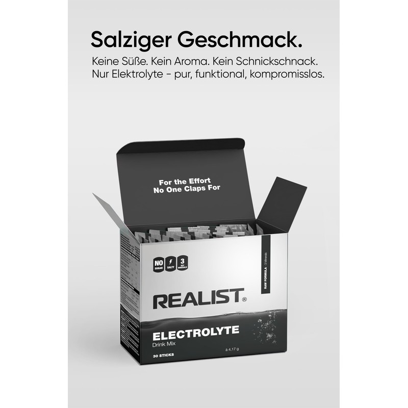 REALIST Electrolytes without sugar - electrolyte powder with 1390 mg electrolytes - potassium and magnesium for electrolyte balance - sports, keto, fasting (30 sticks, RAW (neutral and unsweetened))